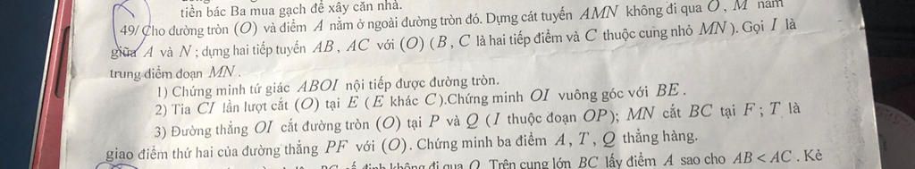 $\to A, B, I, O, C\in$ đường tròn đường kính $AO$