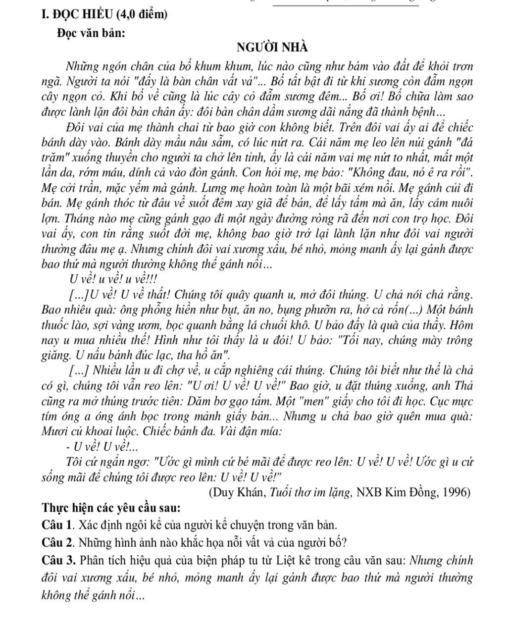 `+` “Bố chịu làm sao được lạnh lặn đôi bàn chân ấy: đôi bàn chân dầm sương dãi nắng đã thành bệnh…”
