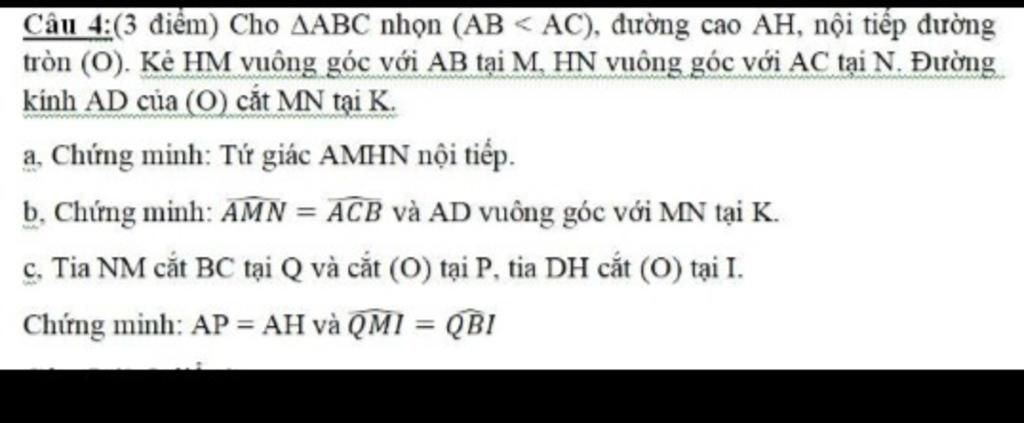 +) CM: Tứ giác MIAH nội tiếp (gAMH = gHIA = 90 độ)