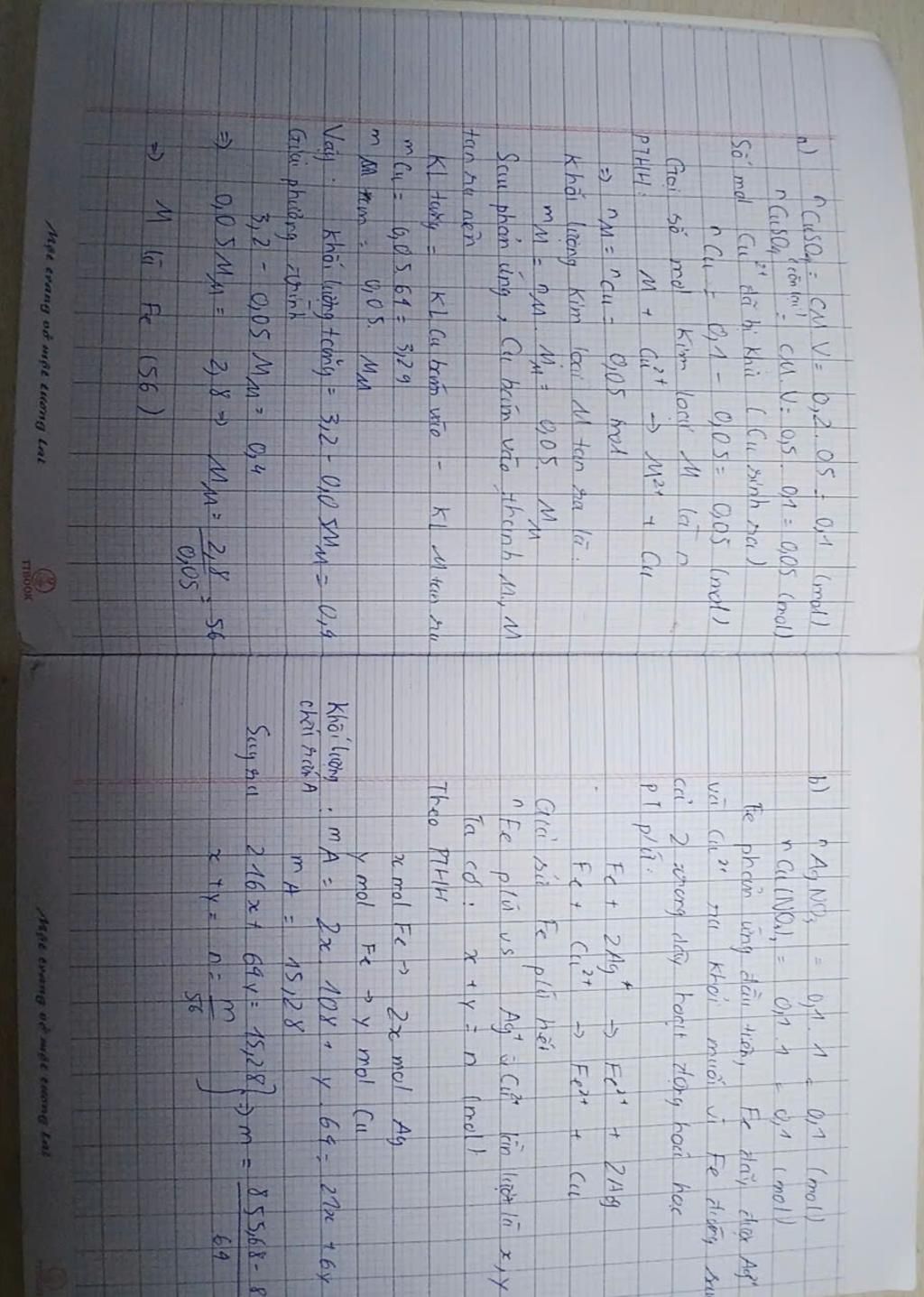 b/ Lấy m(g) kim loại M cho vào 1 lit dd chứa AgNO3 và Cu(NO3)2 , nồng độ mỗi muối là 0,1M. Sau phản ứng ta thu được chất rắn A khối lượng 15,28g và dd B. Tính m(g)?
