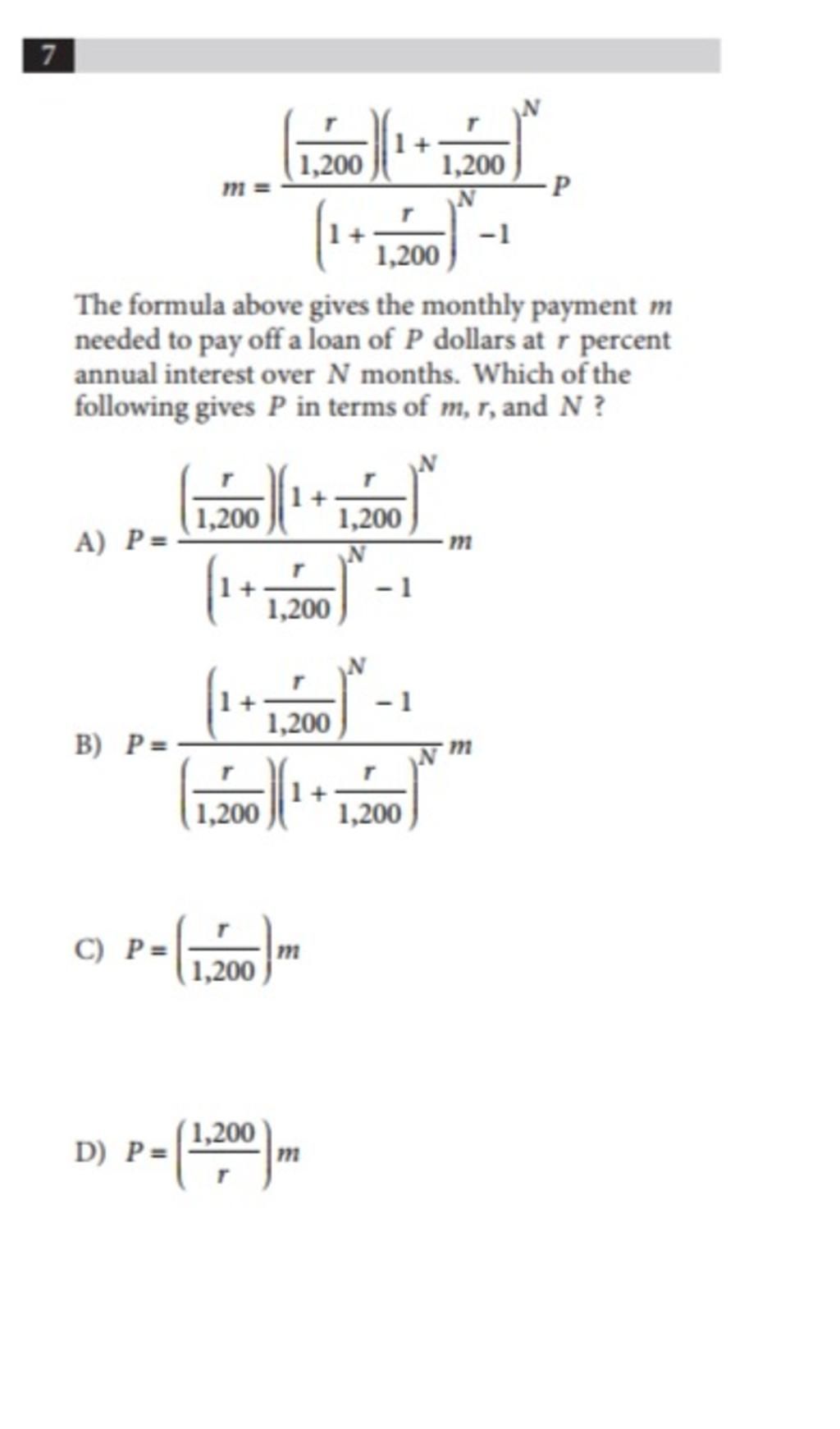 `P=m:((r/1200)(1+r/1200)^N)/((1+r/1200)^N-1)`