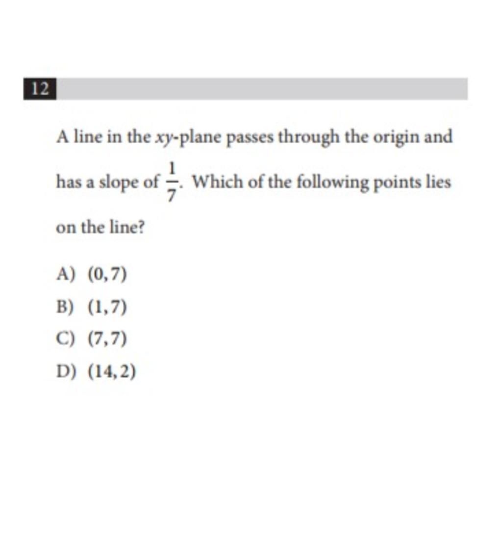 Đường thẳng đi qua gốc tọa độ và có hệ số góc là `1/7` nên phương trình của đường thẳng là `y=(1/7)x`