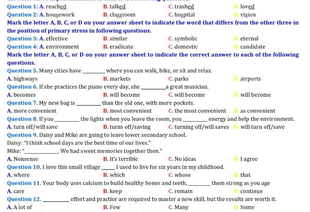 `-` Đuôi /ed/ được phát âm là /t/ khi động từ kết thúc bằng âm /s/, /f/, /p/, /ʃ/, /tʃ/, /k/, /θ/.