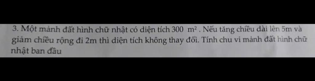 Gọi `x;y` lần lượt là chiều dài và chiều rộng ban đầu của mảnh đất `(m)`
