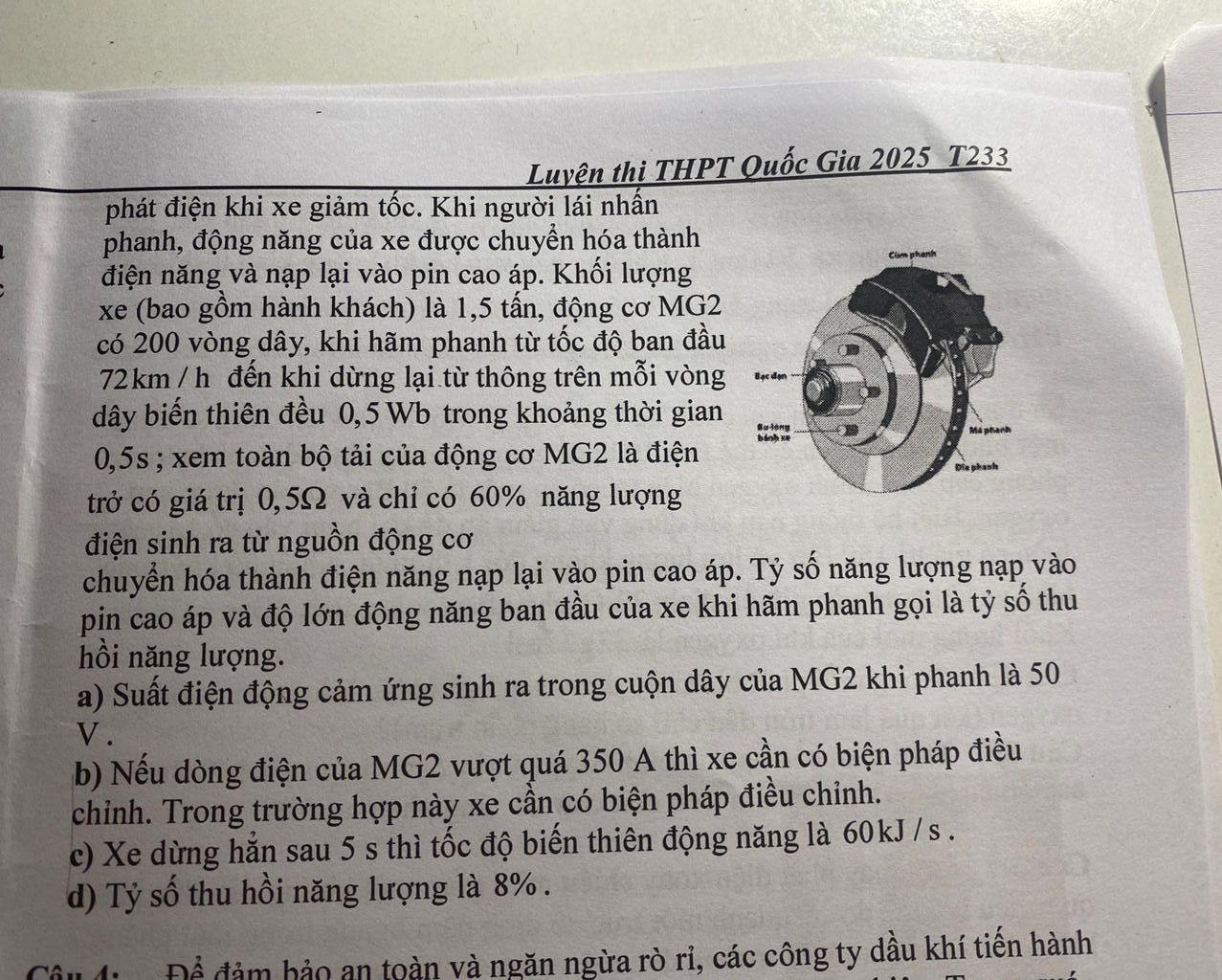 `=>` Tỷ số thu hồi năng lượng: `(24000)/(1/2*1,5*10^3*(72/(3,6))^2)*100%=8%`