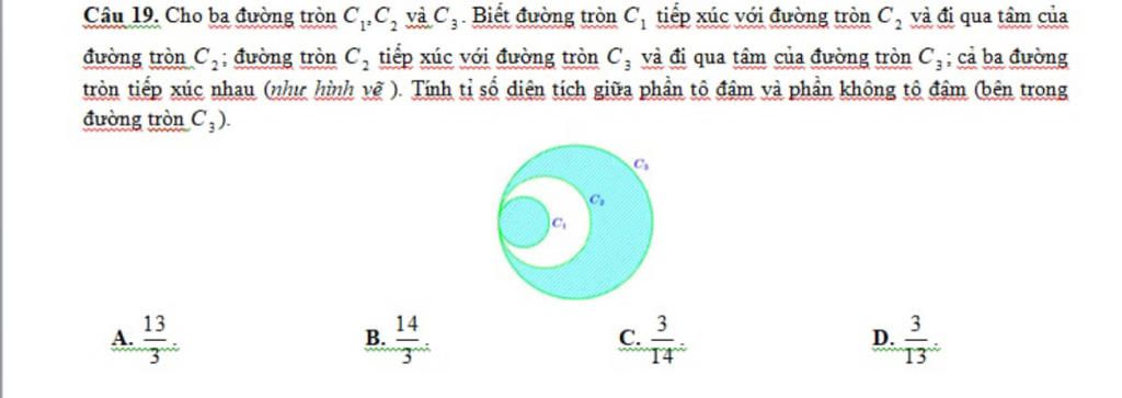 Tâm `C_2` nằm trên đường tròn `C_3` `=>` Bán kính `C_2 =1/2`