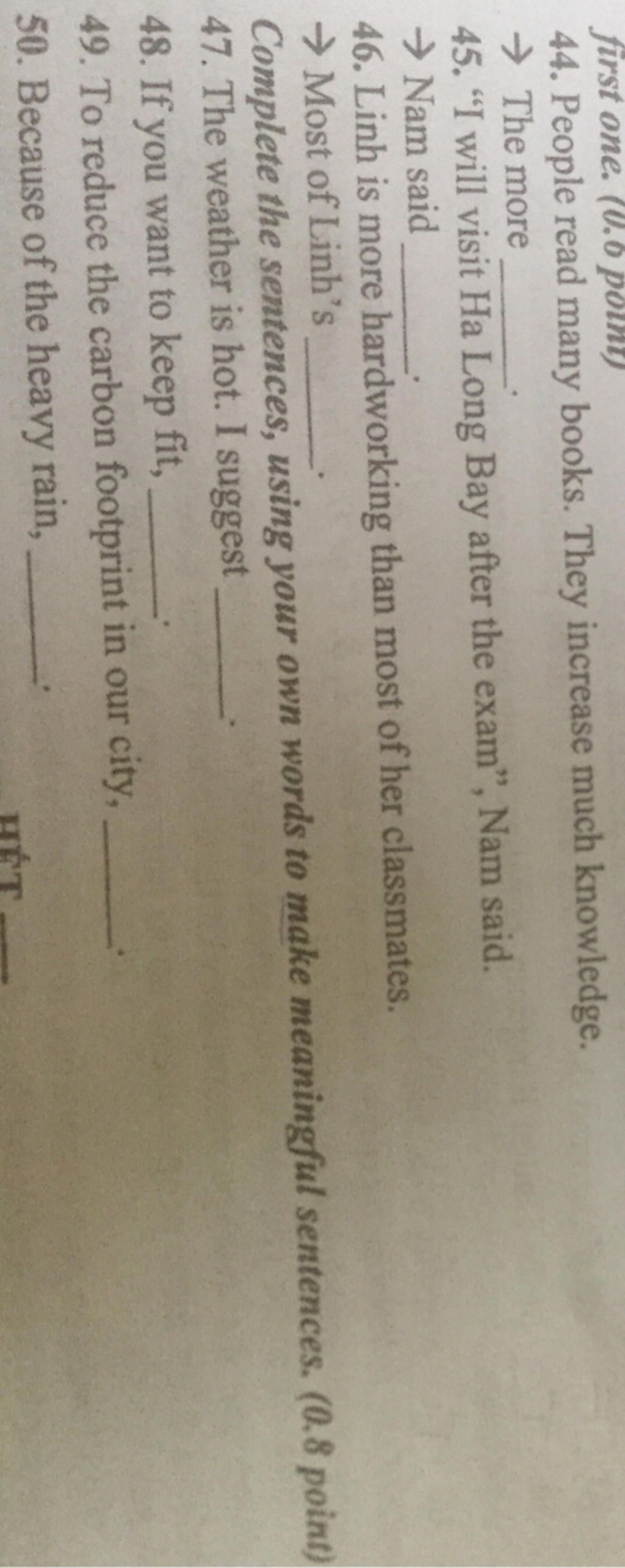 45. Nam said that he would visit Ha Lon Bay after the exam.