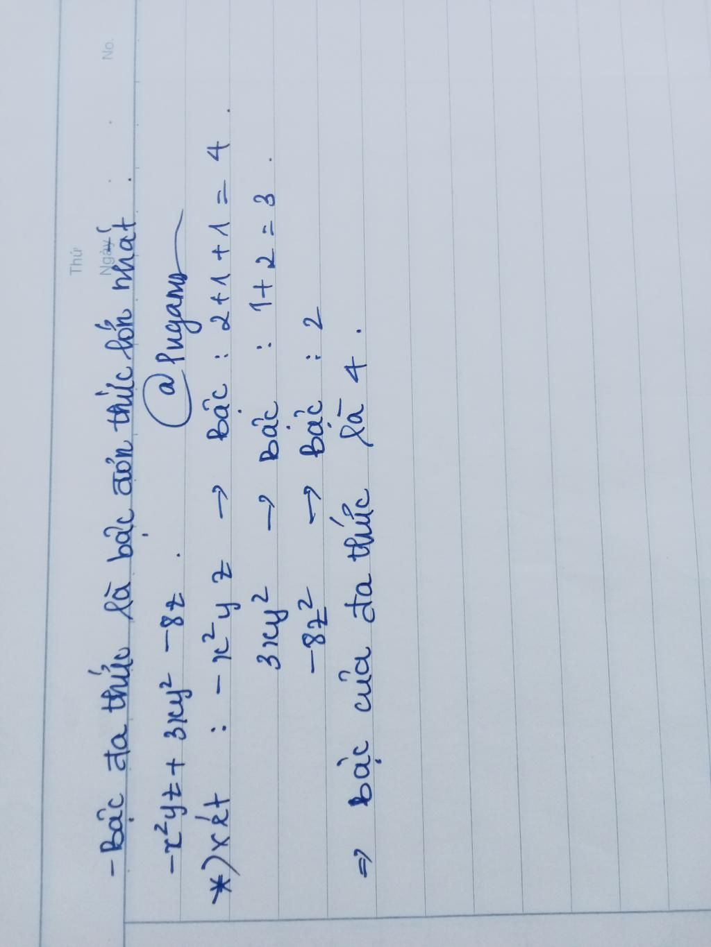em tưởng bậc của đa thức là số mũ lớn nhất còn đơn thức mới cộng ạ 😅