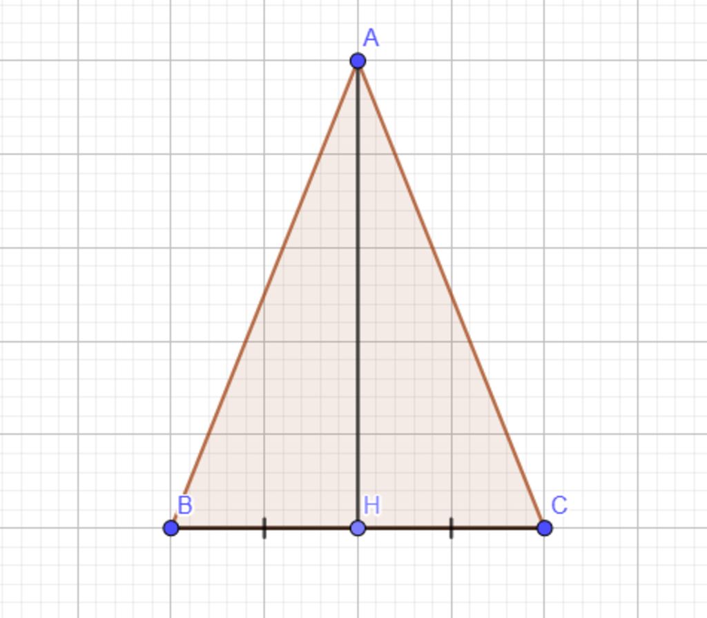 Vì `H` là trung điểm của `BC` nên `AH` là đường trung tuyến của `\triangleABC`