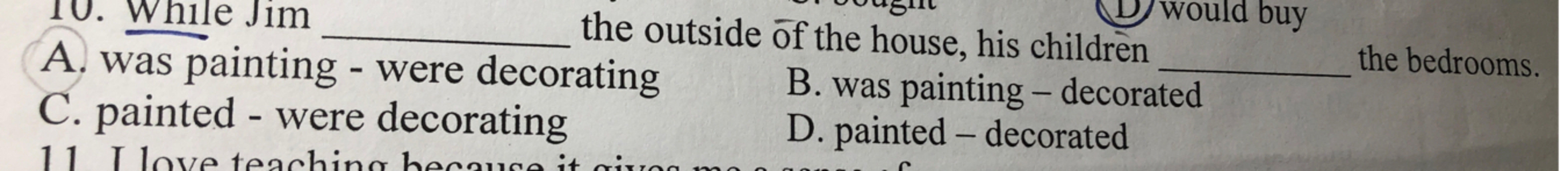 `-` Khi Jim đang tô màu cho căn nhà thì con của anh ấy đang trang trí phòng ngủ