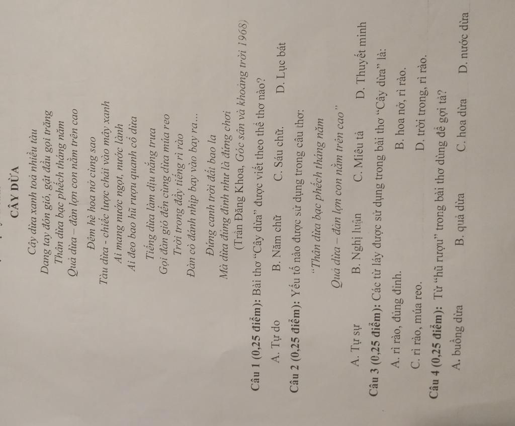 `=>` Chọn đáp án `A.` Cho thấy sức sống trường tồn, mãnh liệt của cây dừa.