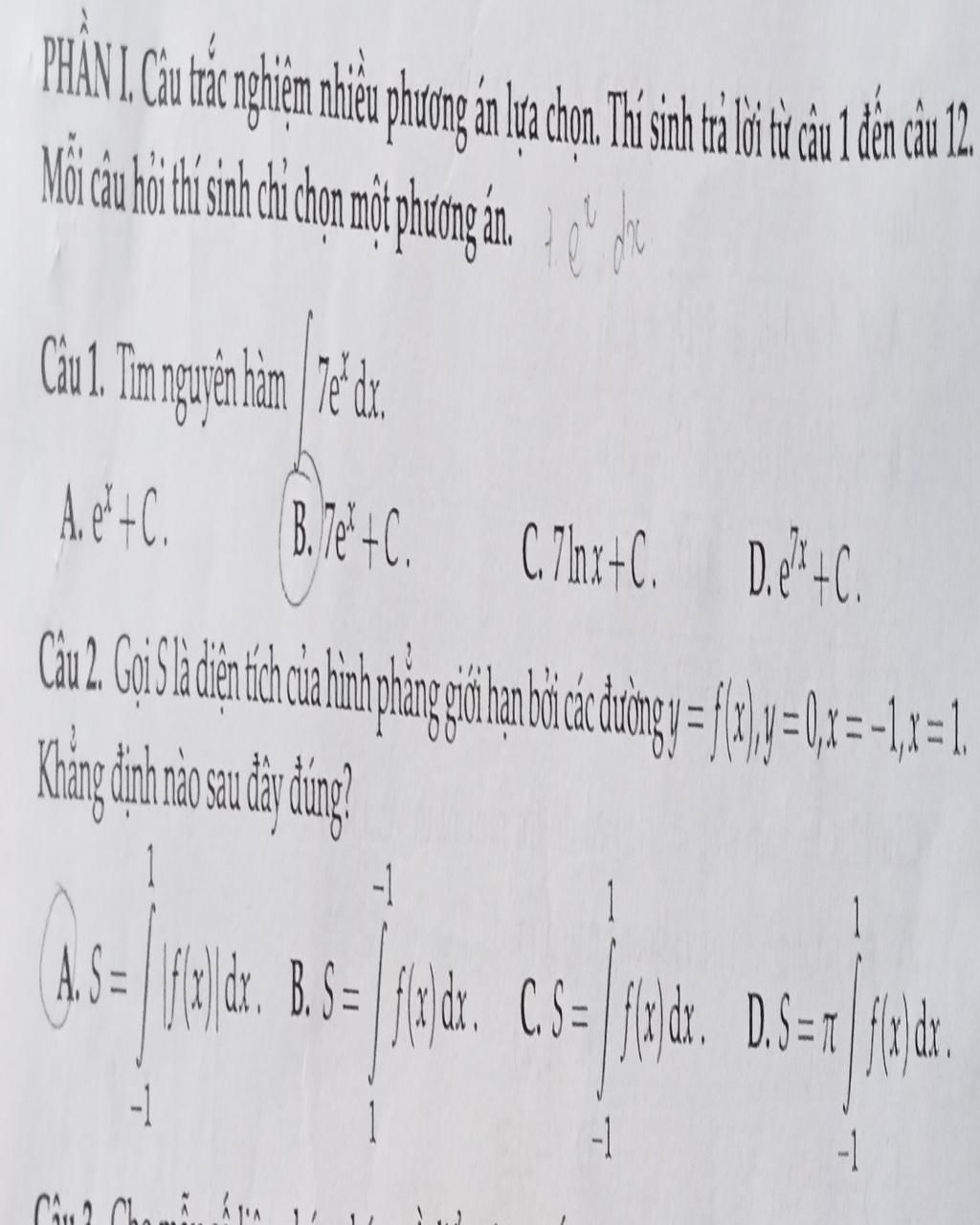 $\int\limits {x=7e^x} \, dx=7e^x+C$