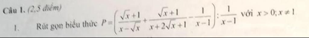 $P=(\dfrac{\sqrt{x}+1}{x-\sqrt{x}}+\dfrac{\sqrt{x}+1}{x+2\sqrt{x}+1}-\dfrac1{x-1}):\dfrac1{x-1}$