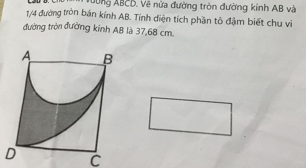 Diện tích `1/4` đường tròn bán kính `AB` là: