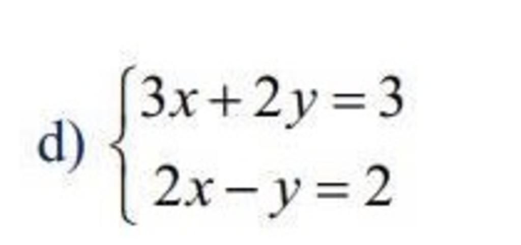 $\begin{cases} 3x+2y=3\\2x-y=2 \end{cases}$