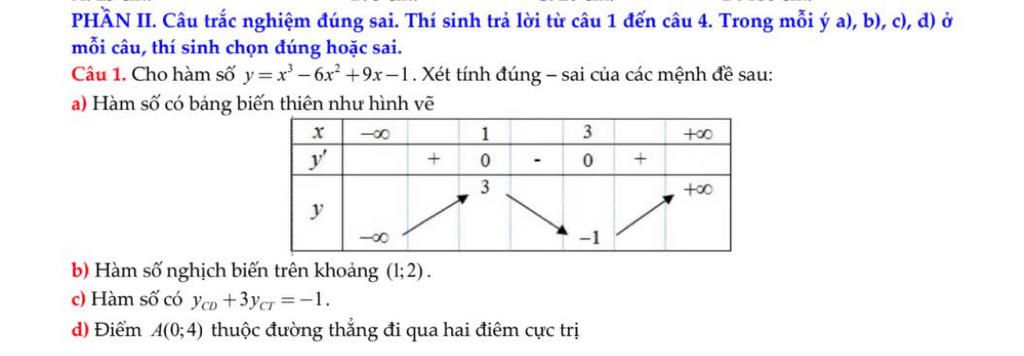 d) Ta có tọa độ của 2 điểm cực trị là:$a(1;3); b(3;-1)$