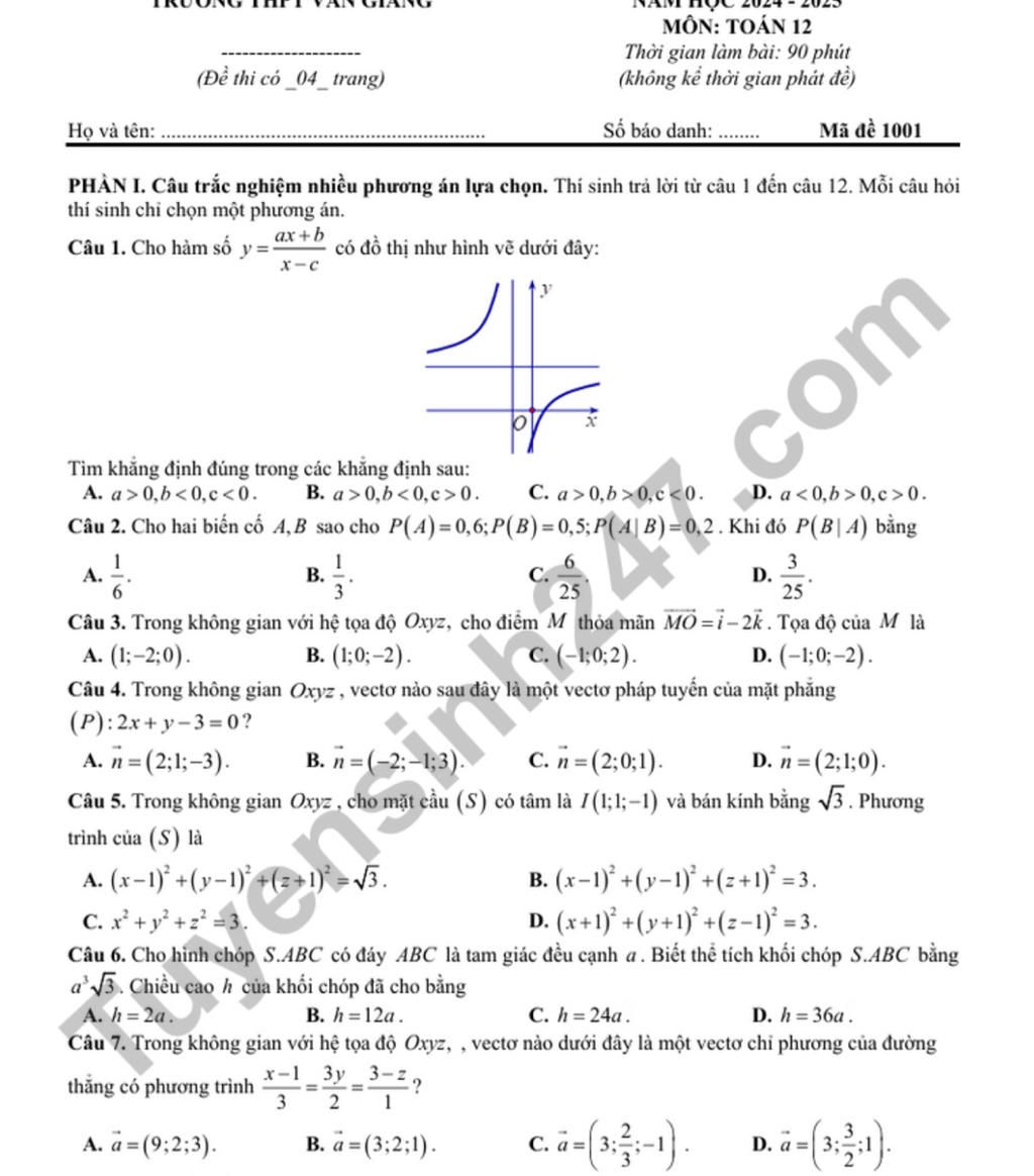 Dựa vào dáng điệu đồ thị dễ thấy `a.(-c)-b>0`