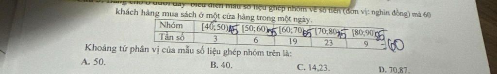 `Q_1= 60+ (60/4 -(3+6))/19 . (70-60) =1200/19`