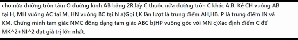 b.Vì $BA$ là đường kính của $(O)\to \widehat{ACB}=90^o\to CMHN$ là hình chữ nhật