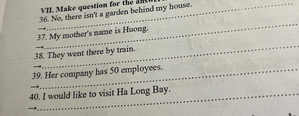 $-$ "There isn't a garden behinh my house" ( không có cái vườn nào sau nhà tôi )