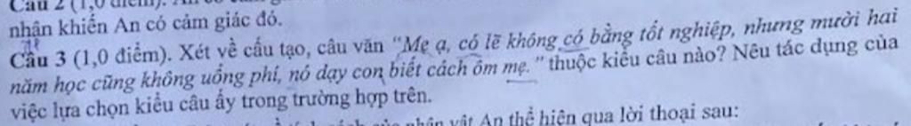 `@` Xét về cấu tạo, câu văn trên thuộc kiểu câu: Câu ghép