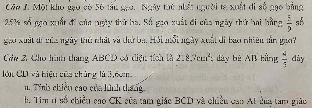 ngày `2 ` xuất đi `(28,8)/4=7,2 ` tấn gạo.