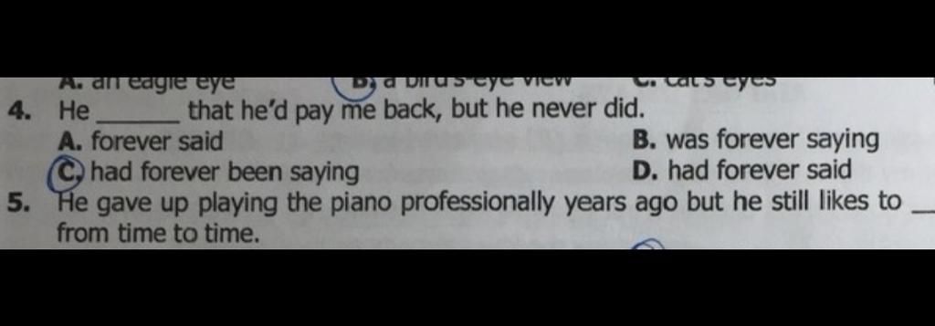 Câu này đang nói về một hành động lặp đi lặp lại trong quá khứ trước một thời điểm khác trong quá khứ ("he never did"). Cấu trúc "had been saying" (quá khứ hoàn thành tiếp diễn) diễn tả một hành động diễn ra liên tục/lặp lại trước một mốc quá khứ.