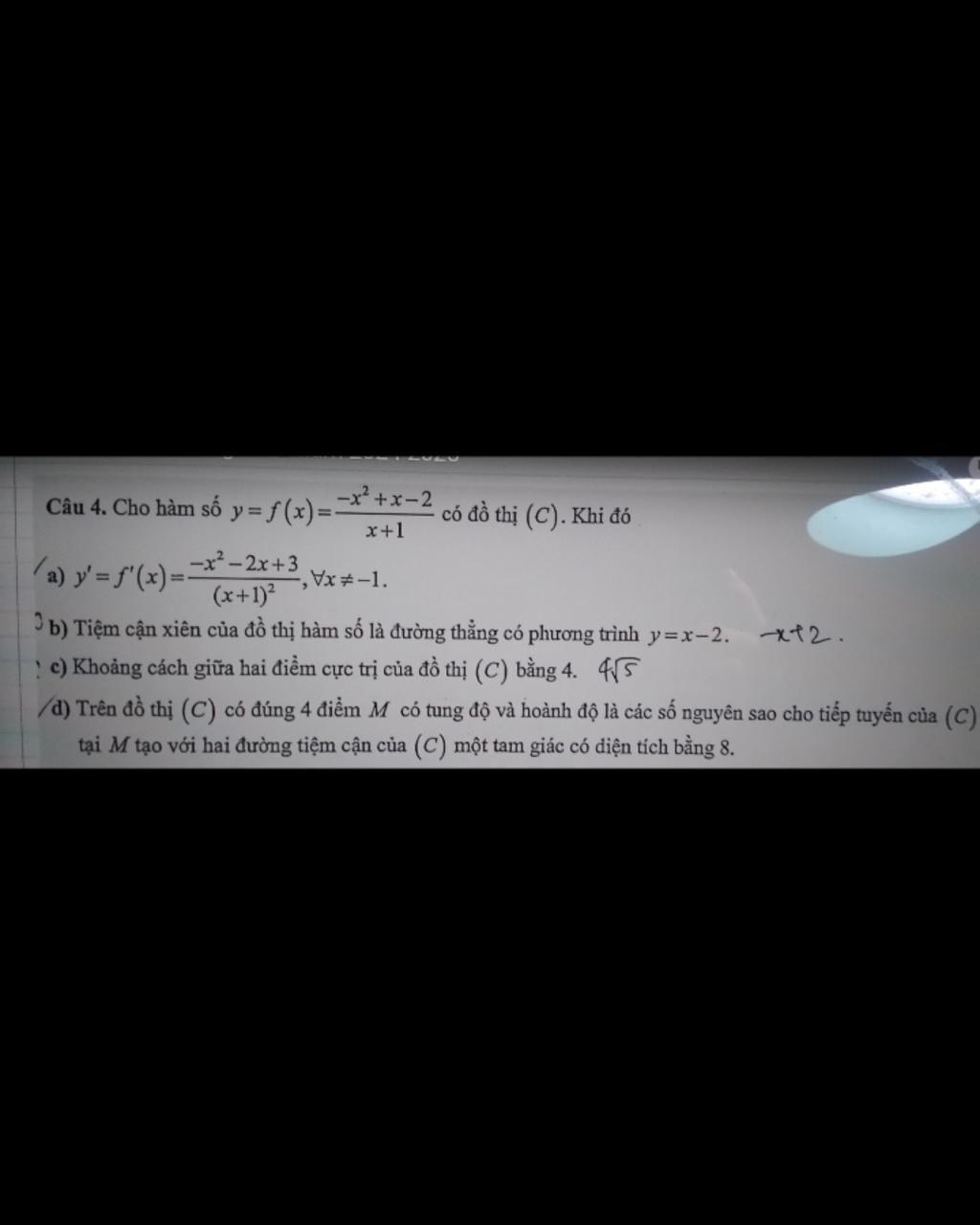 /d) Trên đồ thị (C) có đúng 4 điểm M có tung ...