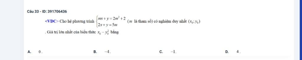 Để hpt có nghiệm thì: `m/2\ne1/1<=>m\ne 2`