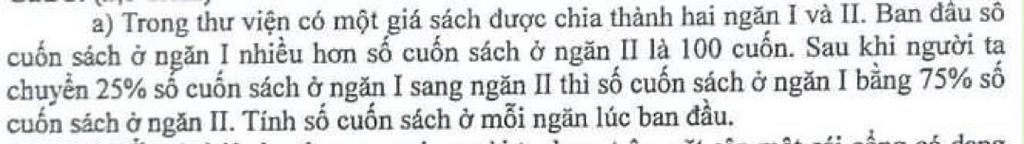 Mà sau khi chuyển số sách ngăn I bằng 75% số sách ngăn II ta có pt: