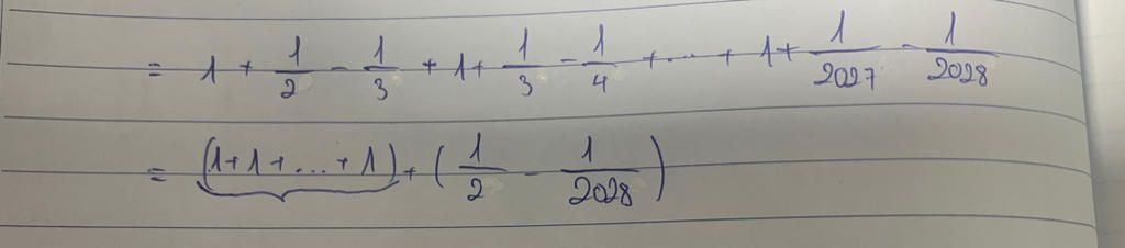 `=(1+1/2-1/3)+(1+1/3-1/4)+...+(1+1/2027-1/2028)`