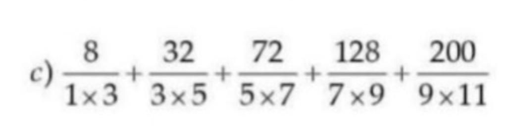 `c)` `8/(1xx3)+32/(3xx5)+72/(5xx7)+128/(7xx9)+200/(9xx11)`