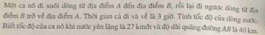 Vậy vận tốc dòng nước là `3km`/`h`