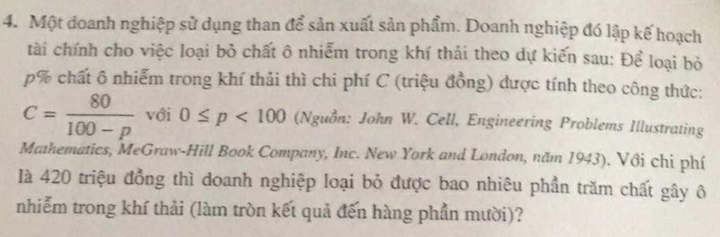 Vì chi phí là `420` triệu đồng nên thay vào công thức ta được `:`