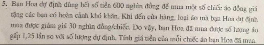 Số áo bạn Hoa dự định mua là: `600/x` (chiếc)