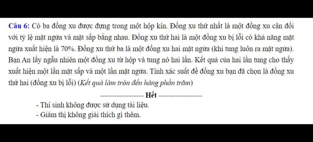 Vì đồng xu thứ hai (bị lỗi, $70\%$ mặt ngửa):