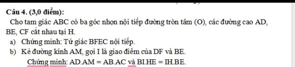 a) Chứng minh: Tứ giác BFEC nội tiếp.