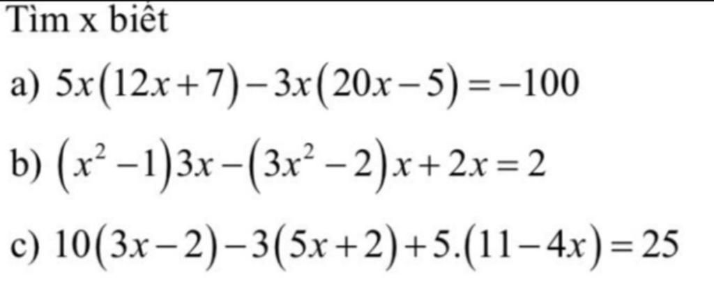 a, `5x(12x+7)-3x(20x-5)=-100`