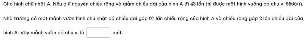 Khi giảm chiều dài của hình chữ nhật `A` đi `43` lần thì được một hình vuông