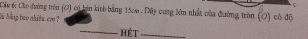 Vậy dây cung lớn nhất của đường tròn là : `30` cm