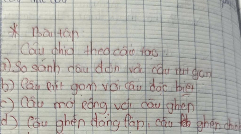 $b)$ So sánh câu rút gọn với câu đặc biệt