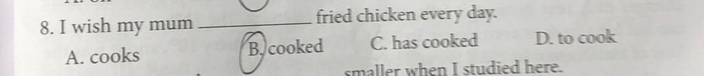 `+` Cooked: Quá khứ đơn ( do có "ed" ) `->` Chọn.