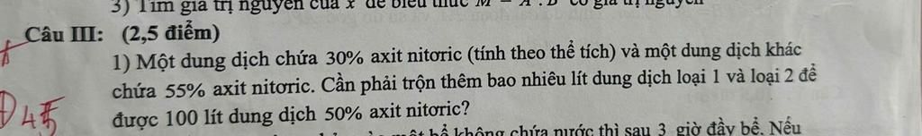 Lượng axit nitoric từ dung dịch loại 1 là: `x . 30% = 0,3x (l)`