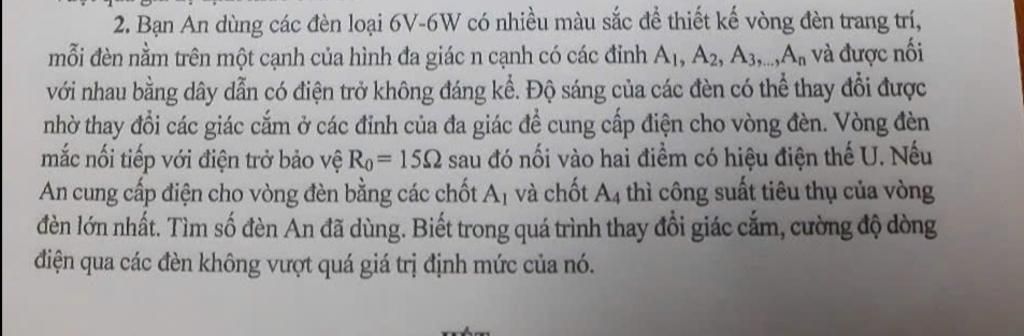 2. Bạn An dùng các đèn loại 6V-6W có nhiều màu sắc để thiết kế vòng đèn trang trí,