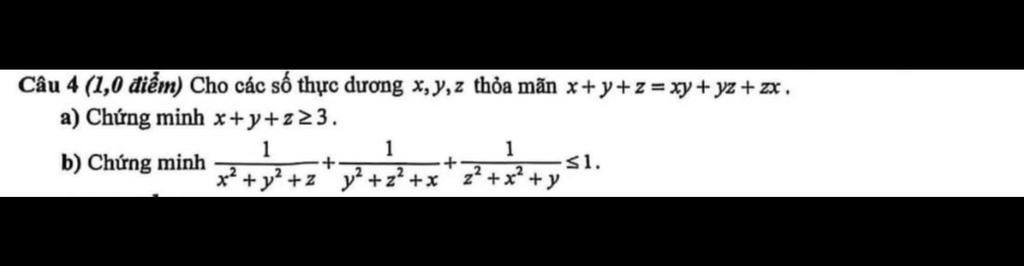 Vậy `(1)/(x^2+y^2+z)+(1)/(y^2+z^2+x)+(1)/(z^2+x^2+y)<=1`