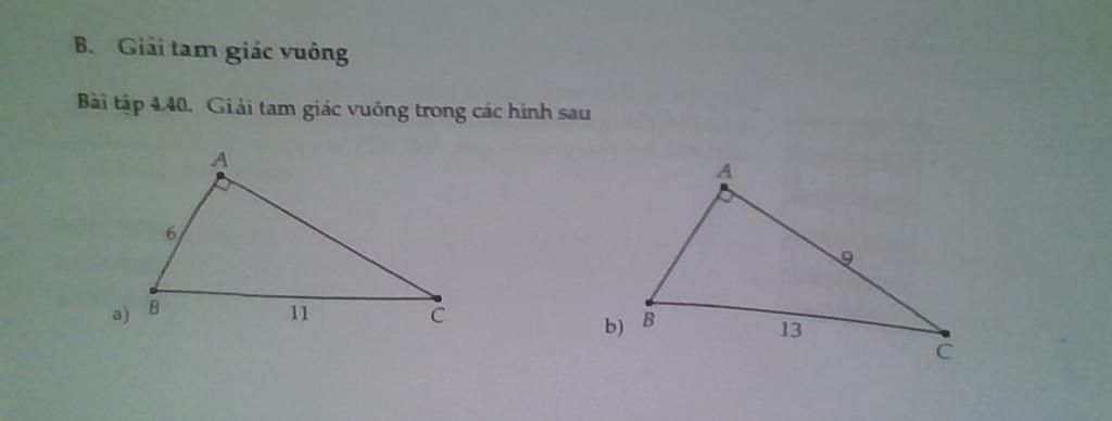 Có `hat{B}=sin^(-1)((AC)/(BC))=sin^(-1)((9)/(13)) ~~ 43,8^o`