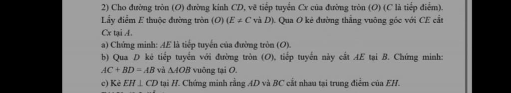 b.Ta có: $AC, AE$ là tiếp tuyến của $(O)$