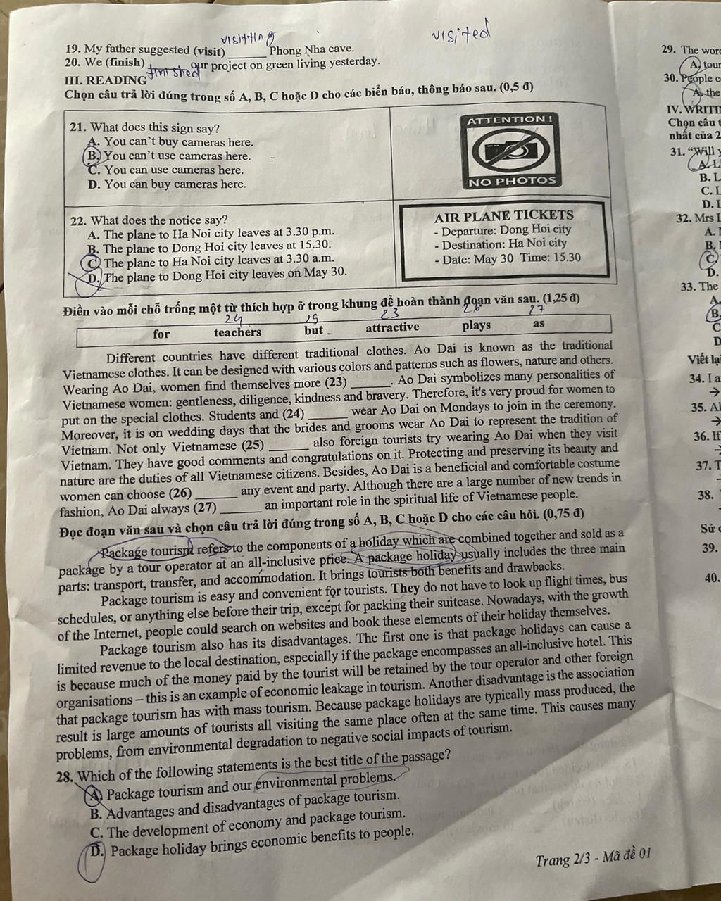 - Loại C (vì máy bay xuất phát vào lúc 3h30 chiều chứ không phải 3h30 sáng)