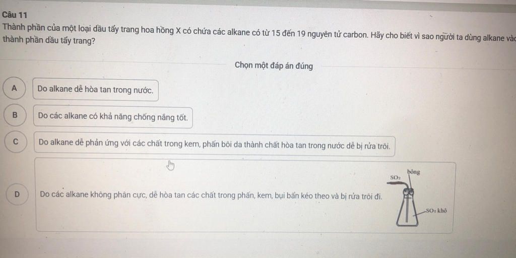 Sau đó, dầu chứa a$lkane$ cùng các tạp chất bị cuốn trôi khi rửa với sữa rửa mặt hoặc nước tẩy trang nhũ hóa