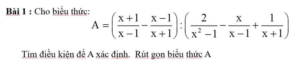 Biểu thức `A` xác định khi